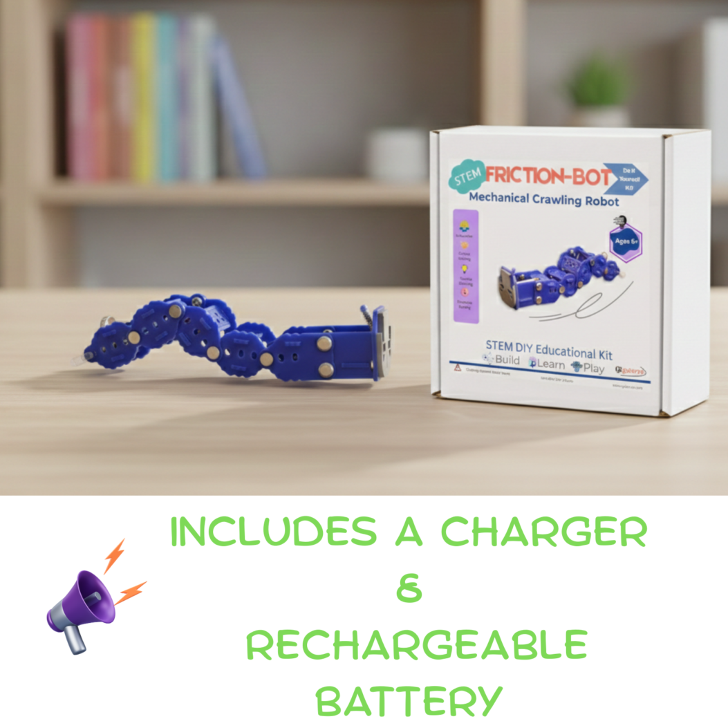 The Friction-Bot Mechanical Crawling Robot is a hands-on STEM kit designed to introduce children to real mechanical engineering concepts through active building and experimentation. This do-it-yourself kit allows kids to assemble their own crawling robot and observe how rotational motion is converted into mechanical movement.