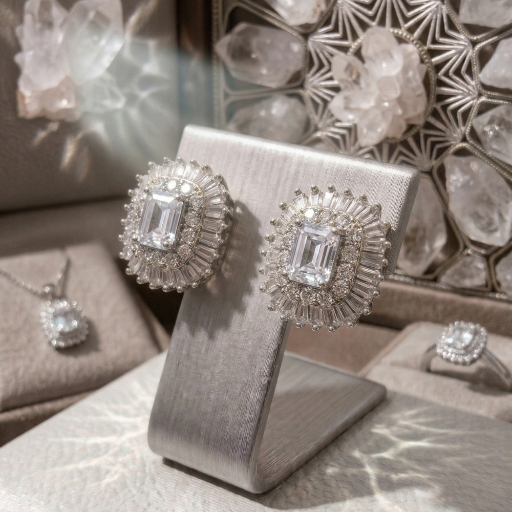 *Shipping calculated at checkoutRadiant stones framed in a halo of shimmering brilliance, these earrings capture timeless luxury with a modern edge.