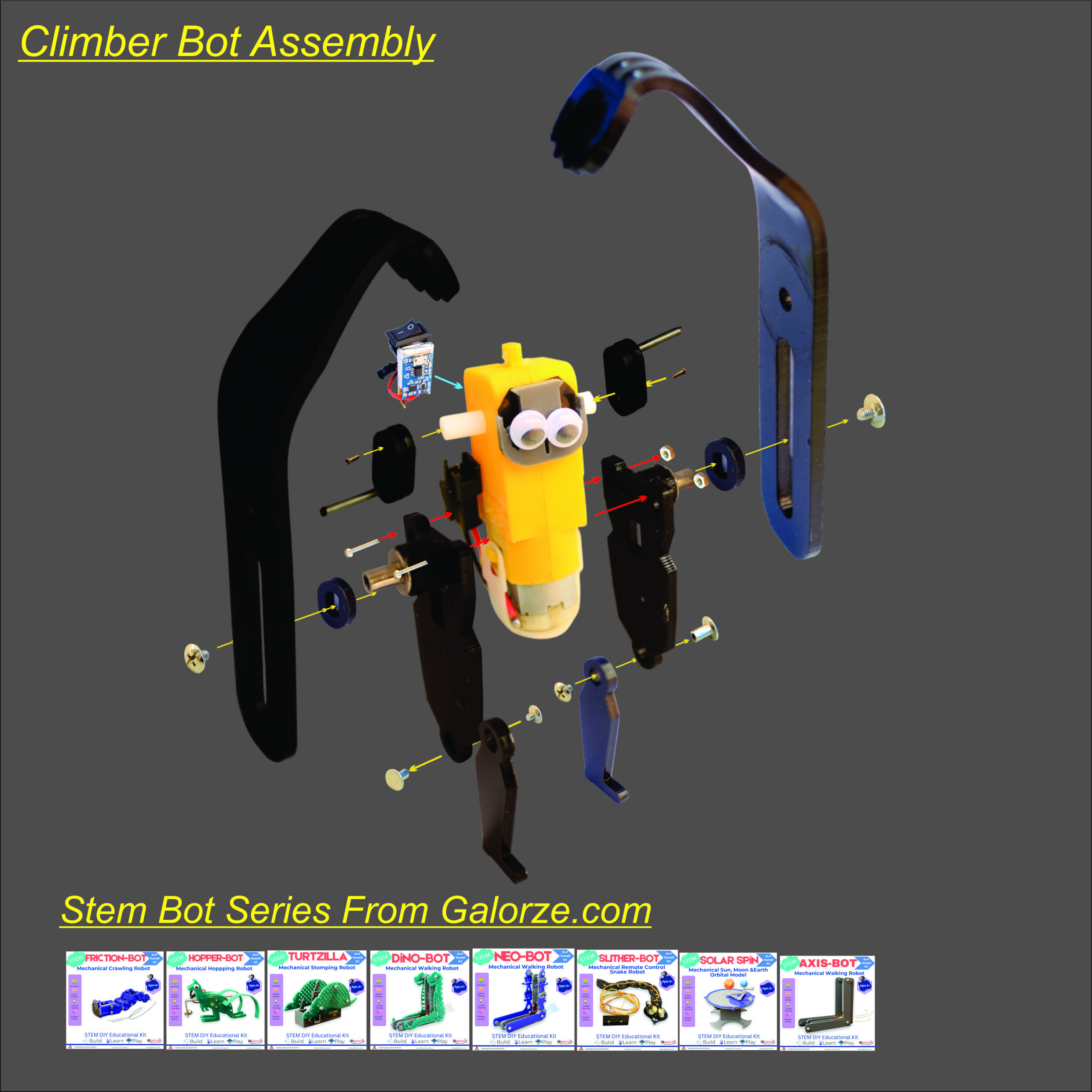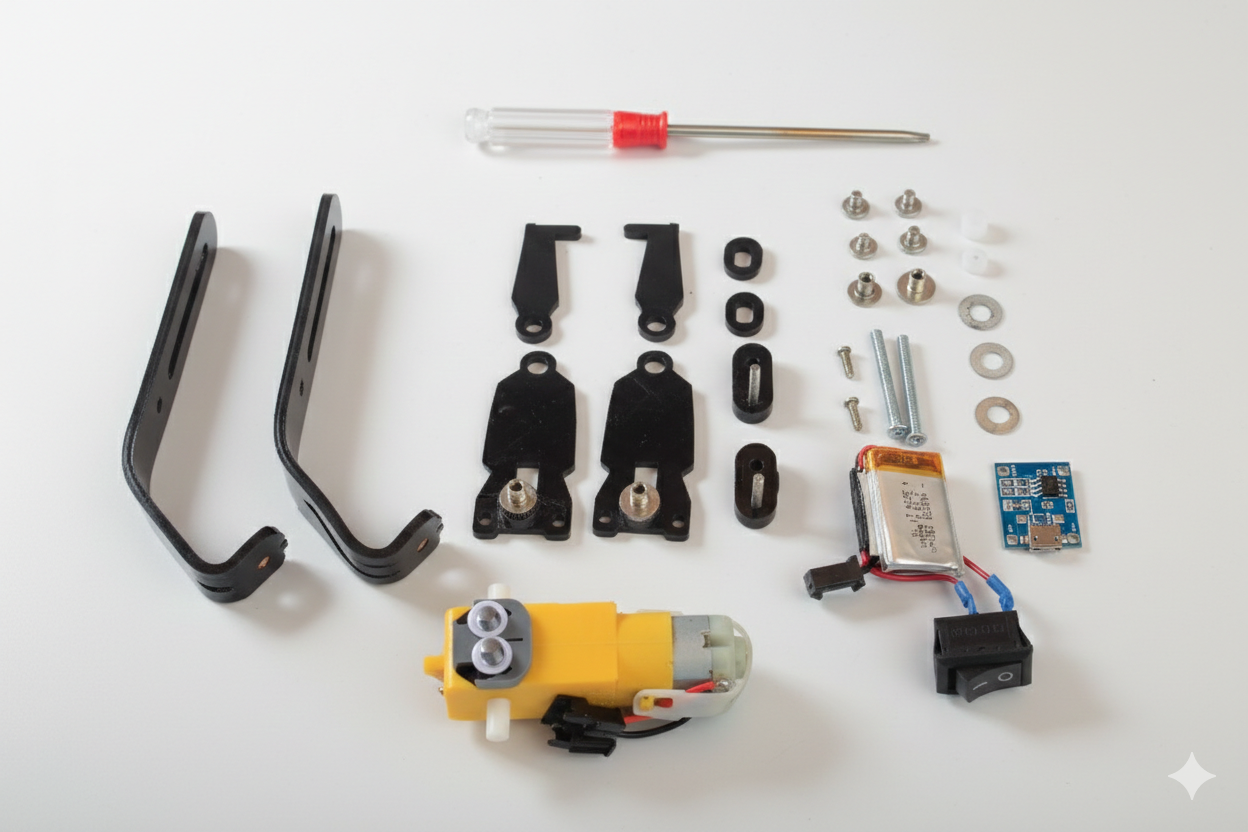 X-BOT is an innovative STEM DIY robot designed to demonstrate how mechanical systems can generate controlled horizontal movement while suspended. Unlike traditional ground-based robots, X-BOT grips a rope securely and travels forward along it using a motor-driven mechanism.